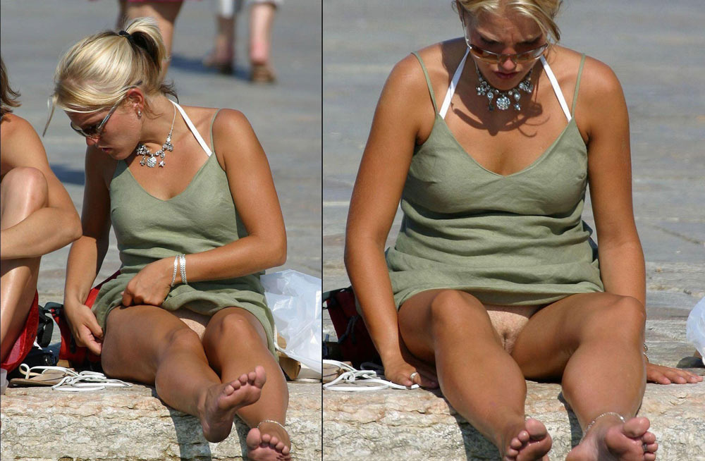 В этой фото подборке вы увидите девушек, которые предпочитают ходить в теплое время года без трусиков. Иногда получается так, что это замечают посторонние люди, и успевают заснять голые пезды на камеру.